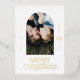 Modern elegant trendy typography Merry Christmas green, black and white real foil gold, silver and rose gold holiday 1 photo card design.