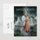 Modern Elegant Typography Photo Save the Date Announcement Postcard. This template features a sophisticated full-photo layout that puts your favorite engagement memory front and center on a convenient postcard. Using a timeless mix of classic typography the "Save the Date" heading is designed to overlay beautifully on your photo. Choose a photo that contrasts with the white text on front or choose the card option with black text at Cross Fox Design. Contact the designer for any customization questions.