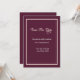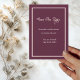 Introducing our exquisite Modern Elegant Typography Rose Gold save the date Card! Perfectly designed for individuals seeking a modern contemporary touch with a touch of elegance, this invitation promises to leave a lasting impression. Featuring a lovely purple background that adds a pop of color, combined with the sophistication of rose gold text and script typography, this card truly radiates class and style.