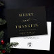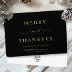 Modern typography based business holiday card reading MERRY AND THANKFUL but can easily be customised to any other text. On the back is space for another message and your corporate logo. This is the elegant black and printed gold version.