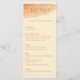 A modern slim wedding menu features a terracotta watercolor wash header with rust orange typography, pairing elegant serif headings with easy to read body text. The course by course layout presents starters, entrée, sides, and dessert clearly, creating a warm, contemporary accent for reception place settings. Personalise with names and date to coordinate the rust orange palette with the rest of the stationery suite.