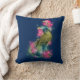 Modern Elegant Watercolor Bird Pink Floral Blue Throw Pillow.