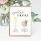 This modern, elegant wedding sign for his and hers signature drinks features a minimalist design, classic serif font, elegant script font, and watercolor drinks. Edit the names and ingredients of each drink for your wedding or event.