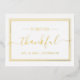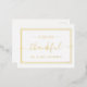 This simple yet modern and elegant gold foil Thank You postcard is an easy way of sending your heartfelt thanks. "Forever Thankful" is featured boldly across the front along with "Mr. and Mrs." in the foil colour of your choice. The text is highlighted by a foiled frame. A handwritten note on the back of the postcard gives it a personal touch.