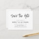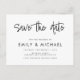 A simple modern elegant save the date wedding announcement postcard. Personalise this minimalist black and white wedding invitation design to have your personal details and message.