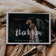 Express your gratitude and thank your guests for their presence and beautiful gifts with this customisable photo card with a modern typography. Just add your favourite wedding picture, change the colours and write your own thank you message.
