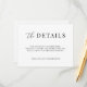 Modern, elegant "the details" enclosure card features a horizontal, minimalist black and white design. Personalize with your wedding website URL with the easy to edit template featuring an elegant script font and classy serif font.