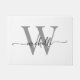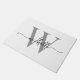Girly Modern Elegant Stylish White and Grey Monogram Initial Name Script Custom Personalised Doormat. This design featuring a first name in a pretty hand lettered swash tail font calligraphy (or typography) with monogram initial in grey and black on white. Great stylish feminine housewarming gift, also for birthday, wedding, bridal shower, anniversary, newlyweds, bachelorette party and It’s for the girl wholikes clean minimalist things.