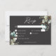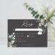 Modern Elegant White Peonies Black Wedding Dinner RSVP Card