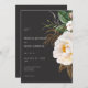 Modern Elegant White Peonies on Black Wedding Invitation