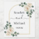 Modern Elegant White Rose & Golden Arch Wedding Wine Label