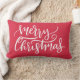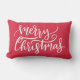 Modern Elegant White Script Merry Christmas Red Lumbar Cushion