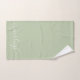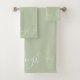 Modern Elegant White Script Name Sage Green Bath Towel Set