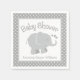 Stylish and sweet custom baby shower napkin features an adorable little newborn baby elephant calf with heart shaped splashes and a patterned background with polka dots. Gender neutral colour scheme of grey and white - colours are perfect for welcoming a baby boy or girl. Personalise the custom text.