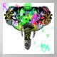 Meet Sunshine the Elephant. She comes in plain black and white, tie dye, and paint splatter. Curving linear line tangle style mandala designs in black and white, over laid with colorful rainbow paint splatter. Original graphic design and line art.