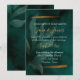 modern emerald green and leaves invitation