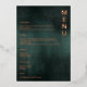 Modern Emerald Green Black Elegant Wedding Menus