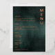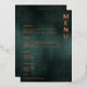 Elevate Your Wedding Reception: Modern Emerald Green Black Elegant Wedding Foil Menus. Transform your dining experience with our meticulously designed menus, seamlessly blending emerald green and black tones enriched by elegant foil accents. Set the tone for a sophisticated wedding reception with these menus that harmoniously balance contemporary elegance and timeless charm. Customise them to match your unique theme. Create a memorable ambiance that resonates with your distinctive style. Shop now and delight your guests with an unforgettable dining presentation.