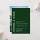 This invitation features a chic emerald green background with a minimalistic design. The names of the couple are highlighted in bold, elegant typography, adding a touch of modern elegance to the invitation. Add your photo on the back.