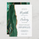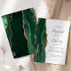 Modern Emerald Green Gold Agate Script Wedding Invitation