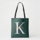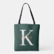 Modern Emerald Green Monogram Script Tote Bag