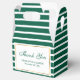 Modern emerald green wedding favour boxes. Easily personalise these emerald green striped wedding favour boxes with your event details.