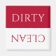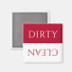 A simple, minimal empire red and white Dirty/Clean dishwasher magnet.