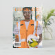 A modern engineering magazine-style graduation photo invitation, featuring a personalised graduate engineer photo with a warm orange tone in the background—perfect for celebrating this milestone with a sleek, professional touch.