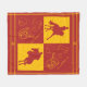 A bold and modern equestrian design in firebrick red and warm yellow featuring the silhouettes of a dressage and a showjumping horse with riders juxtaposed with equestrian tacks such as a saddle, a whip, riding boots, a helmet, and a horseshoe. Personalise the fleece blanket with your monogram or initials and make it uniquely yours. This is a great home decor item for a horse lover or an avid equestrian.