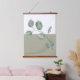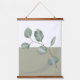 Modern botanical art features watercolor eucalyptus leaves on grey and white colorblock background