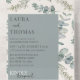 Get inspired by this lovely modern and rustic watercolor design. Featuring sage green and dusty blue eucalyptus arranged in an all over pattern. This invitation is a great way to send all your details in one easy to use format. All you need to do is change the text to your personal requirements, then you guest can detach the rsvp information and send back. So easy and convenient.