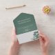 Eucalyptus Wedding Invitation All in One with rsvp via wedding website and QR code. with watercolor eucalyptus foliage leaves and botanical green colour scheme