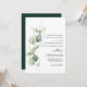 Eucalyptus Greenery Bridal Shower Script Invitation template you can easily edit for your wedding and it is perfect for a chic elegant wedding. Featuring eucalyptus foliage and modern typography on white background. On the reverse side is a plain emerald green background with a boho feel