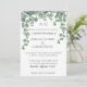 Modern minimalist green watercolor eucalyptus leaves wedding invitation. Personalise text, font style, colour and size.