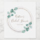 These custom wine bottle labels will add elegance to your bridal shower favour gifts. This modern design template features a round coffee brown metallic frame accented by hand painted watercolor eucalyptus greenery. In the centre in script typography is a name, the words "Bridal Shower", and the shower date to personalise. Please check out our I Love Weddingz shop to find more selections in this wedding collection. Designed by artist Susan Coffey.