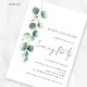 Modern Sage Eucalyptus Wedding Evening Party Invitation. Available dgitally and printed. A Minimalist botanical style to invite your evening wedding guests. A set handwritten script for Evening Party and the rest of the text you can easily personalize. An elegant branch of watercolor eucalyptus leaves runs down the left hand side.