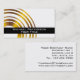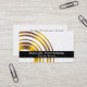 A professional business card design featuring golden circles over a white background embellished with a black band. Personalise with your details.