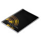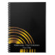 A professional notebook design featuring golden circles over a crisp black background. Personalise with your details. See the matching business card here: