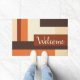 Warm your home doorway this fall with this modern custom colour block doormat. Door mat features blocks of autumn colours: warm shades of brown, red, orange, and yellow.