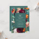 A modern fall floral birthday party invitation in a with rich jewel tone colour palette of teal, burgundy red, russet orange, and blush pink creates a lovely floral border surrounding your text. These colours are often used from late-summer into fall and through the winter months. A thin handwritten script type face spells out the word birthday in carefree style. Personalise the text template with your event details. Shown here as a 60th birthday celebration, you can personalise with any age.