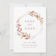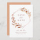 Modern fall save the date card featured rustic watercolor autumn botanical foliage greenery and faux copper foil leaves and geometric frame, simple and elegant, great for fall rustic wedding, winter botanical garden wedding.