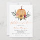 Fall in Love with this elegant bridal shower invitation featuring watercolor pumpkin and fall floral and botanical leaves.