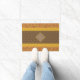 Add a modern touch to your home this fall with this custom monogram doormat. Mat features beige polka dots on a dark brown background, warm gold sashes, and a beautiful edge of colourful orange, red, and yellow falling leaves. This door mat makes a perfect autumn addition to your home decor and is also a great and personalised autumn gift, especially for a housewarming, bridal shower, birthday, Thanksgiving, or wedding.