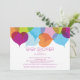 Pretty Baby Shower Invitation featuring heart shaped leaves in purple, green, orange & blue set on a modern & stylish crisp white background. Flip our unique autumn fall baby shower invitation over to view a matching back for an extra special touch. Stylish & chic fall leaf baby shower invitation for a girls shower, boys shower or gender neutral shower.