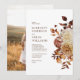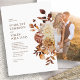 Modern Fall Photo Wedding Invitation. This elegant and rustic wedding invitation features hand-painted watercolor burnt orange and terracotta leaves, cream and beige dahlias, and beautiful rust-coloured roses perfect for a fall or autumn wedding! The back of the invite has a photo for personalising. Find matching items in the White Fall Romance Collection.