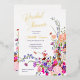 Elegant modern fall winter flowers illustration with pretty wild flower and brush script bridal shower with a modern calligraphy typography with red, purple, pink , terracotta flowers.