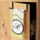 Soft butter yellow tones with sleek, black wavy lines accentuate the modern black and white centerpiece with your personalised family initial. A subtle, matching yellow drop shadow compliments the calligraphy initial in black.