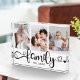 Modern custom photo collage block with space for 3 photos surrounding a trendy swirly script reading FAMILY and your custom name below.