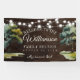 Welcome your relatives in style with this personalised family reunion banner featuring two watercolor trees, warm wood grain background, and festive white string lights across the top. Customisable text fields let you add your family name, reunion date, and location so guests instantly know they are in the right place when they arrive. Printed on vinyl, this reusable banner is perfect for park shelters, backyard barbecues, picnic pavilions, cabins, or indoor reunion venues.