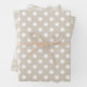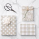 Custom-designed wrapping paper sheets featuring farmhouse style beige buffalo check, dots, and foliage pattern design.